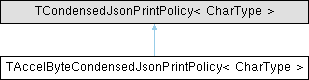 Inheritance diagram for TAccelByteCondensedJsonPrintPolicy< CharType >: